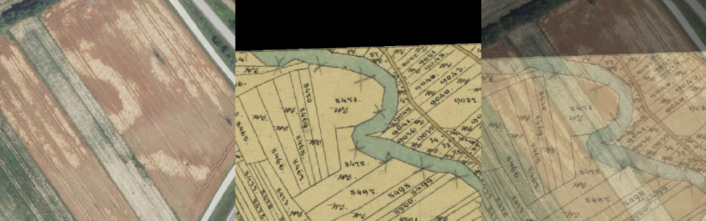 Ein Schwerpunkt liegt auf der Rekonstruktion von Veränderungen, die die Kulturlandschaft seitdem überformt haben. Dazu gehören etwa historische Bachläufe der Pinka, die heute teilweise verschwunden, verlegt oder nur noch indirekt nachvollziehbar sind. In manchen Fällen lassen sich diese alten Verläufe sogar in aktuellen Luft- und Satellitenbildern noch erahnen. Solche Überlagerungen von historischem Kartenmaterial und gegenwärtiger Landschaft sind für mich besonders spannend, weil sie zeigen, dass Vergangenheit oft nicht verschwunden ist, sondern nur schwer lesbar geworden ist.